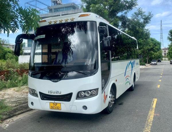 Xe ghế ngồi 45 chỗ, có điều hòa và nước uống miễn phí